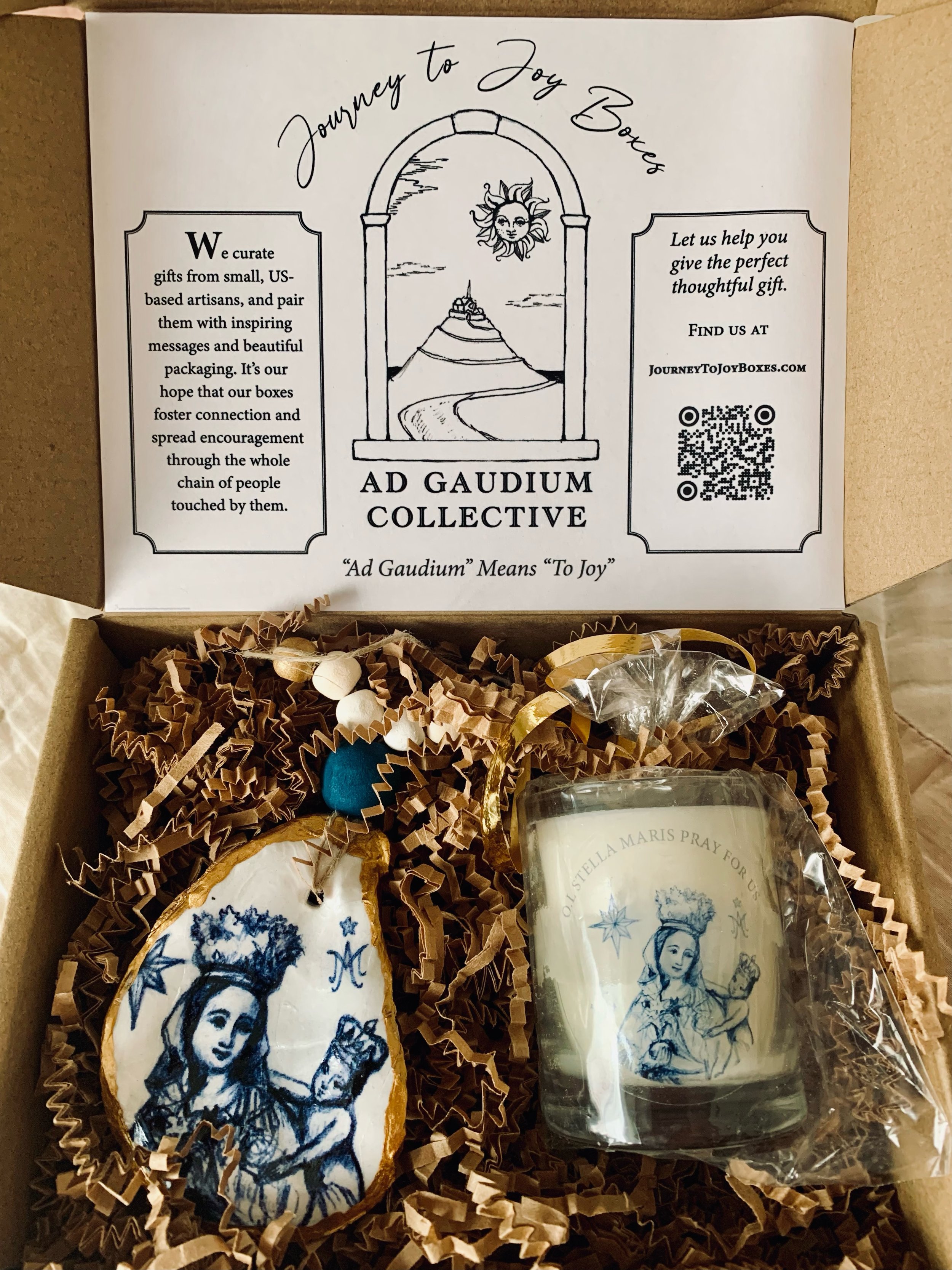 Journey to Joy’s Stella Maris Blessing Box, featuring Trail Light’s Black Sea candle.